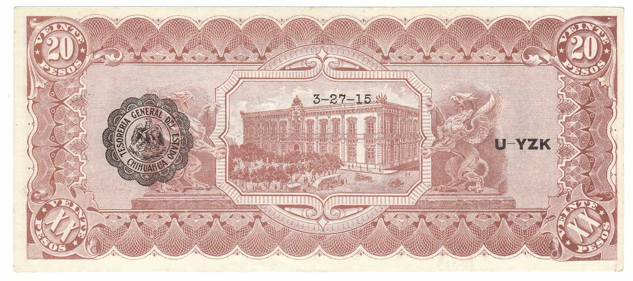 MEXICO, CHIHUAHUA, 20 Pesos, 1914, Crisp