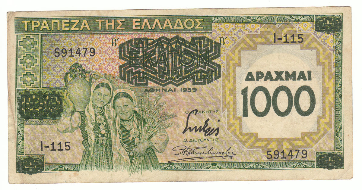 Greece 1000 drachmas 1939 VF!!!