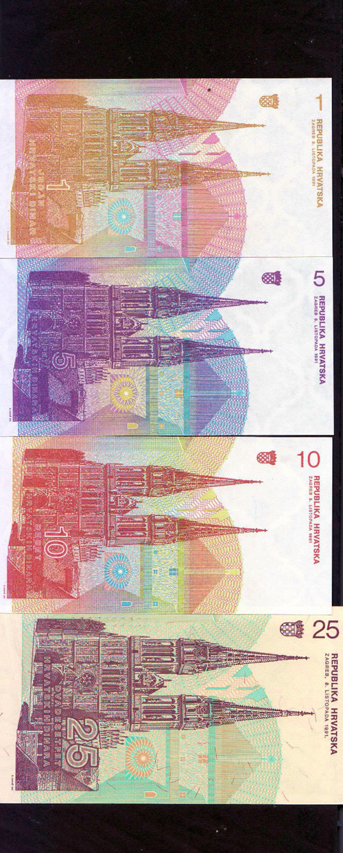 Croatia 1991 * 1/5/10/25 Dinars * Banknote set UNC