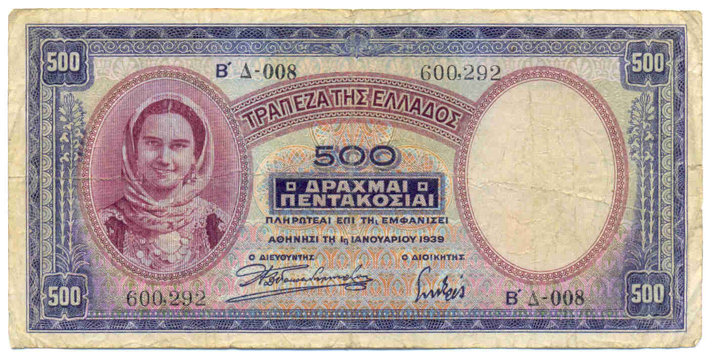 500 ΔΡΑΧΜΕΣ 1939 - 500 DRACHMAS 1939