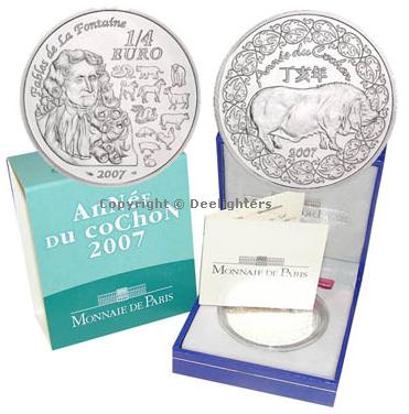 FRANCE. 1/4 Euro Silver BU 2007 Année du Cochon / Year of the Pig