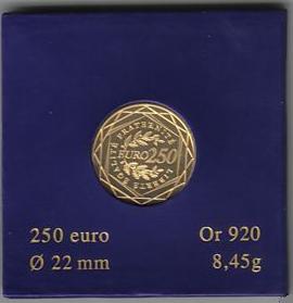 FRANCE. 250 Euro Gold La Semeuse 2010 (Free of VAT)