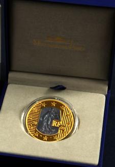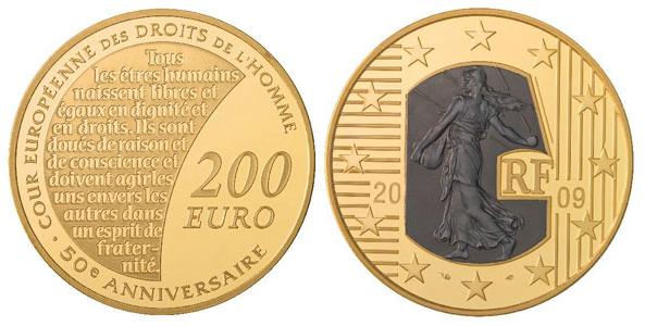 The Paris Mint will be paying homage to the European Court of Human Rights, inspired by French and universal values, on the occasion of its 50th anniversary. The Sower, the standard bearer of our technological innovations, was chosen to represent this event through a black gold insert, the latest colour in the coloured gold palette. Blue gold and violet gold have already been used in 2004 and 2007 respectively. The coin will represent the traditional face of the Sower and will be dated 2009. The reverse will evoke the values upheld by this court, namely : Europe the protector, freedom, and upholding human rights.