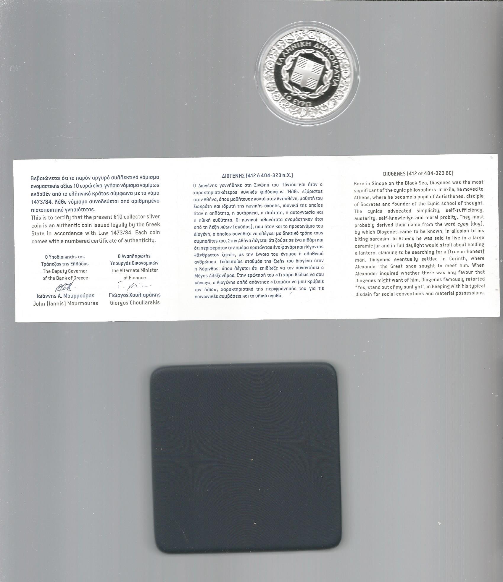 Greece: 10 EURO silver proof coin 2017 "DIOGENIS" in BOX with C.O.A Nr. 1996