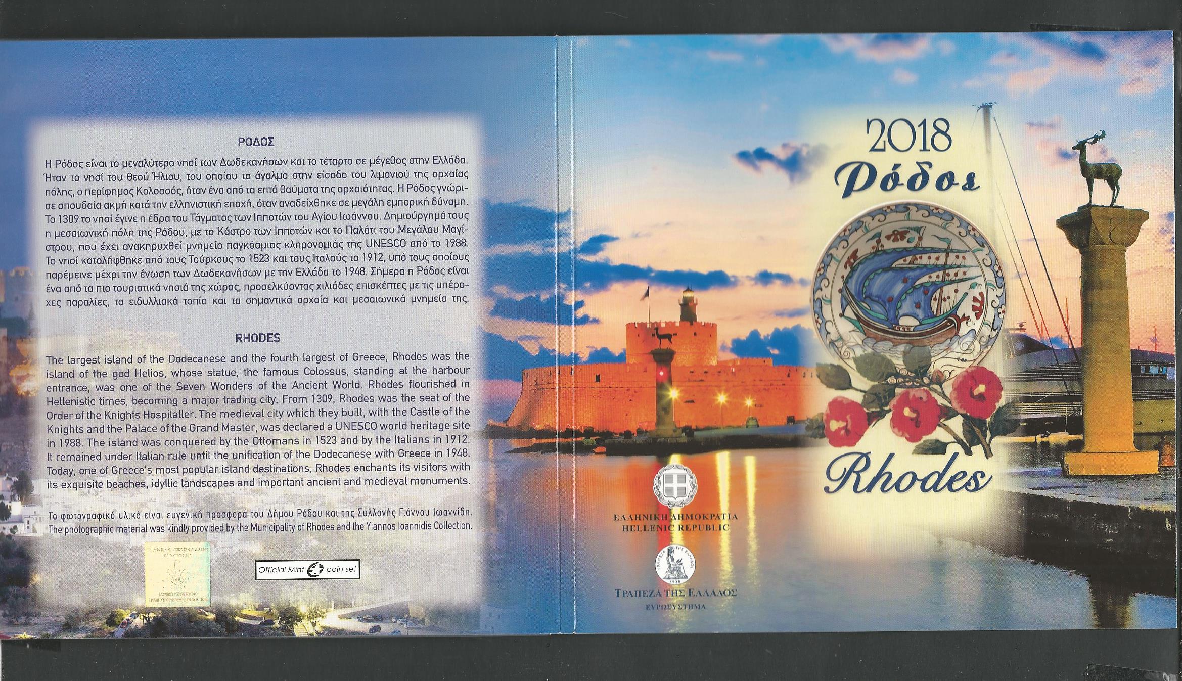 Greece: Blister (Triptych) 2018 (rhodes) with all EURO coins ( 2 EURO with Europe !)