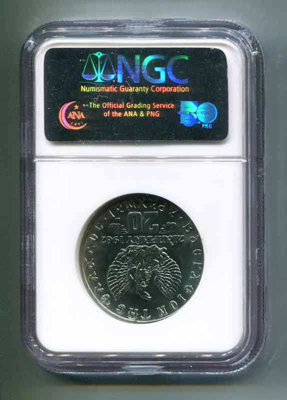 20 Δραχμές 1973Α πιστοποιημένο με εξαιρετικά υψηλή βαθμολογία MS67(!!) κάτι που το κάνει σπάνιο!