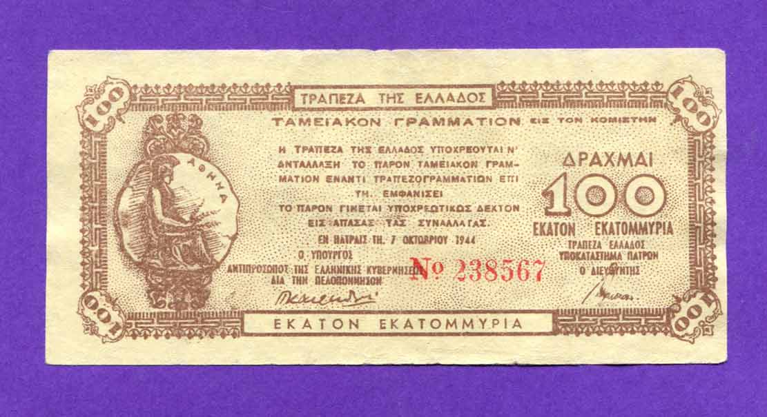 100.000.000 Πάτρας 1944 Νο238567 σε πολύ καλή κατάσταση!