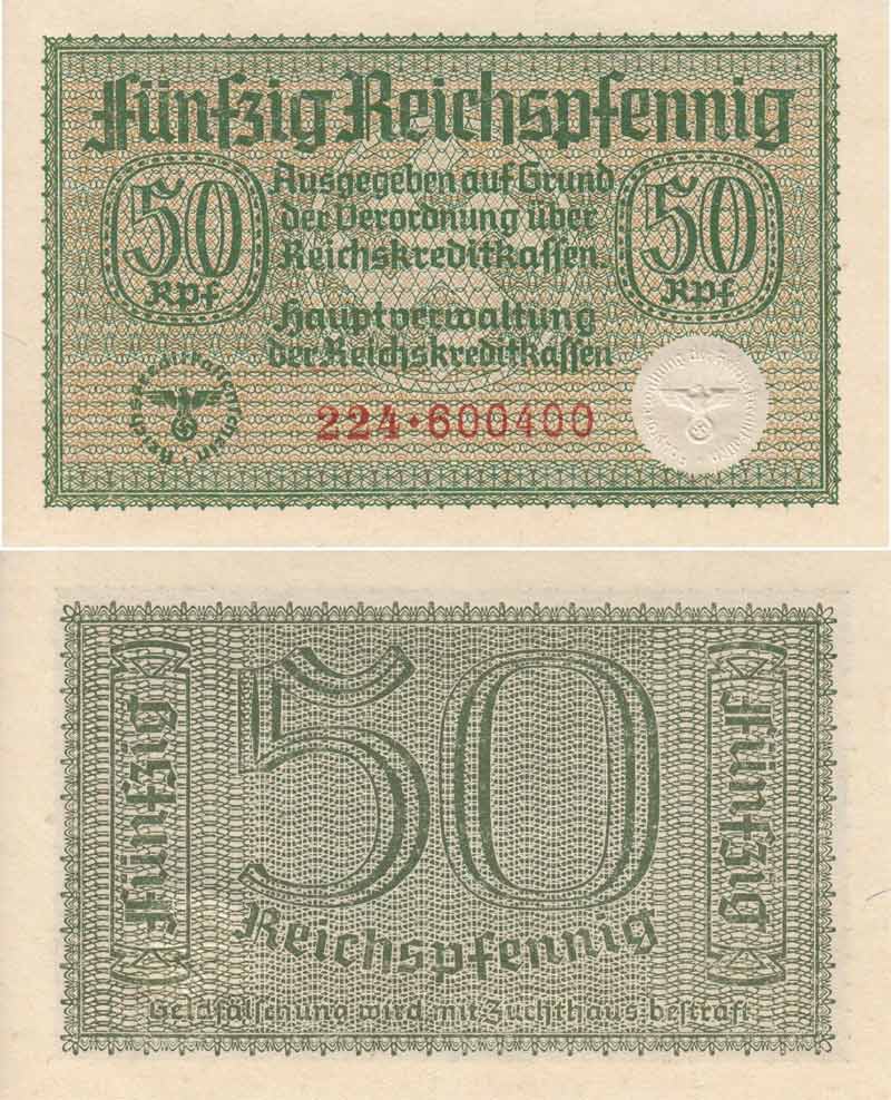50-Reichpfenning 1943 με την σβάστικα, Ελλην. Κατοχής UNC