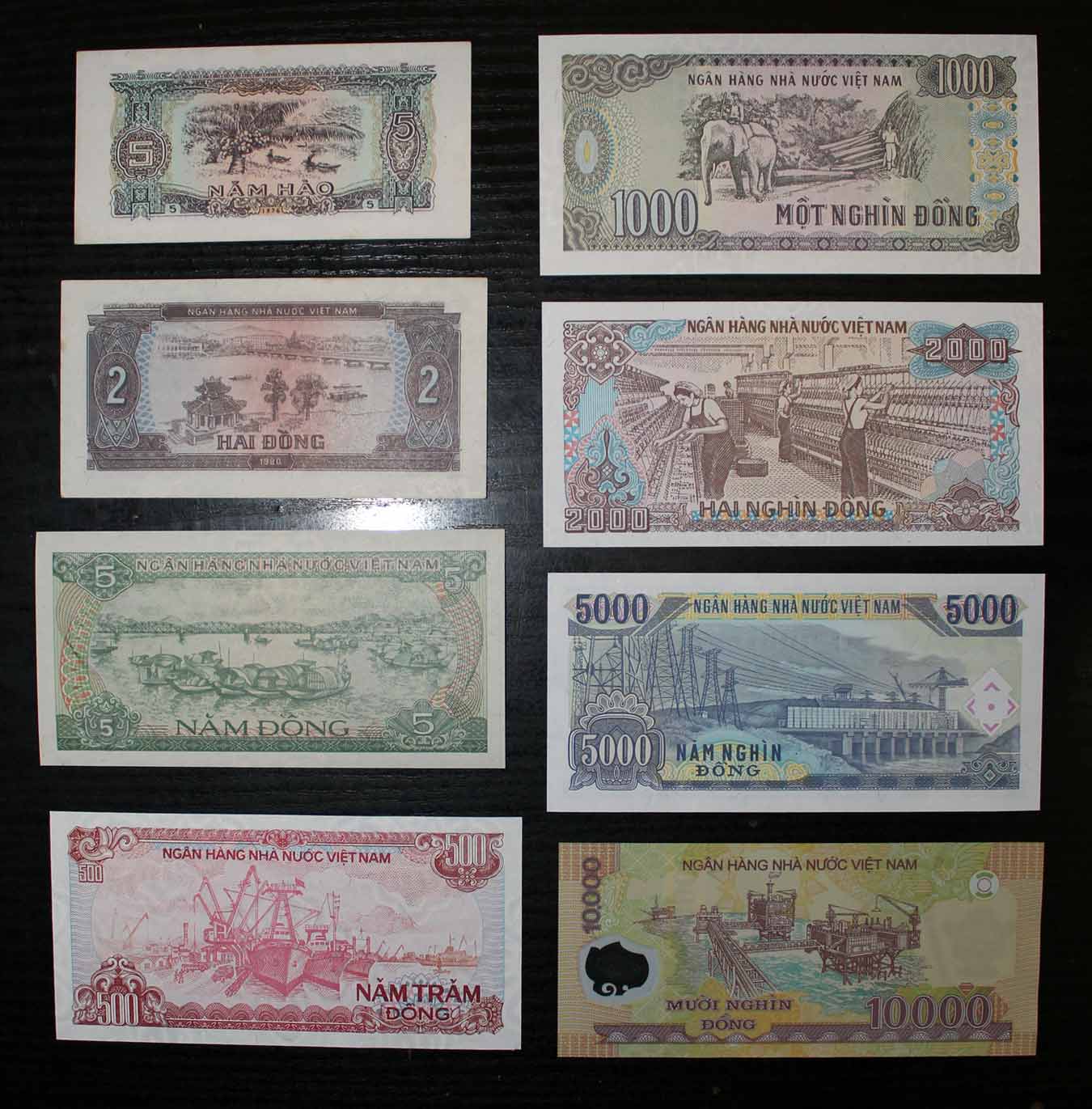 Το παρόν σετ περιέχει 8 χαρτονομίσματα από το Βιετνάμ, όλα σε ακυκλοφόρητη κατάσταση από 5 Hao έως 10.000 Dong, μάλιστα το μεγάλο των 10.000 με τον Χο Τσι Μινγκ είναι κατασκευασμένο από πολυμερές με διάφανο παράθυρο!