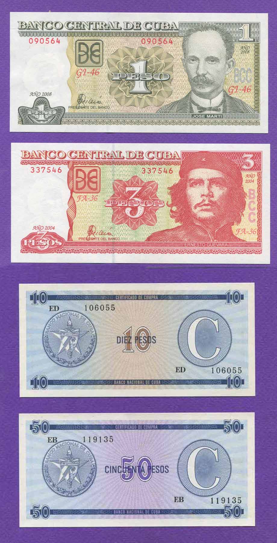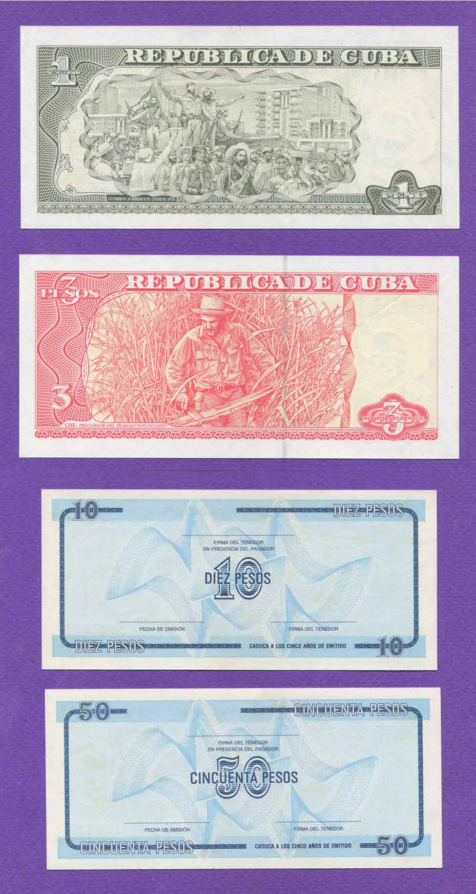 KOYBA, Τσε Γκεβάρα, συλλογή με 4 χαρτονομίσματα σε ακυκλοφόρητη κατάσταση, από ένα έως και 50 πέσος!